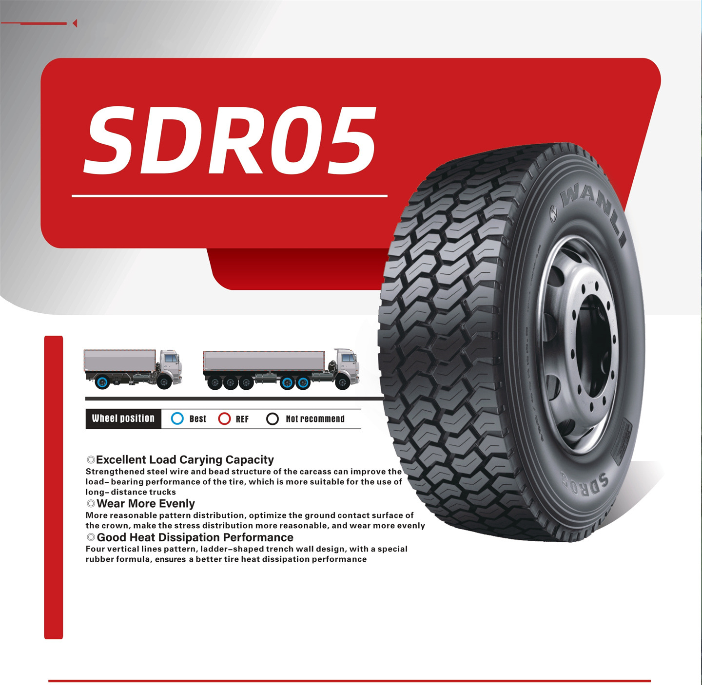 Strengthened steel wire and bead structure of the carcass can imporve the load-bearing performance of the tire , which is more suitable for the use of long-distance trucks.