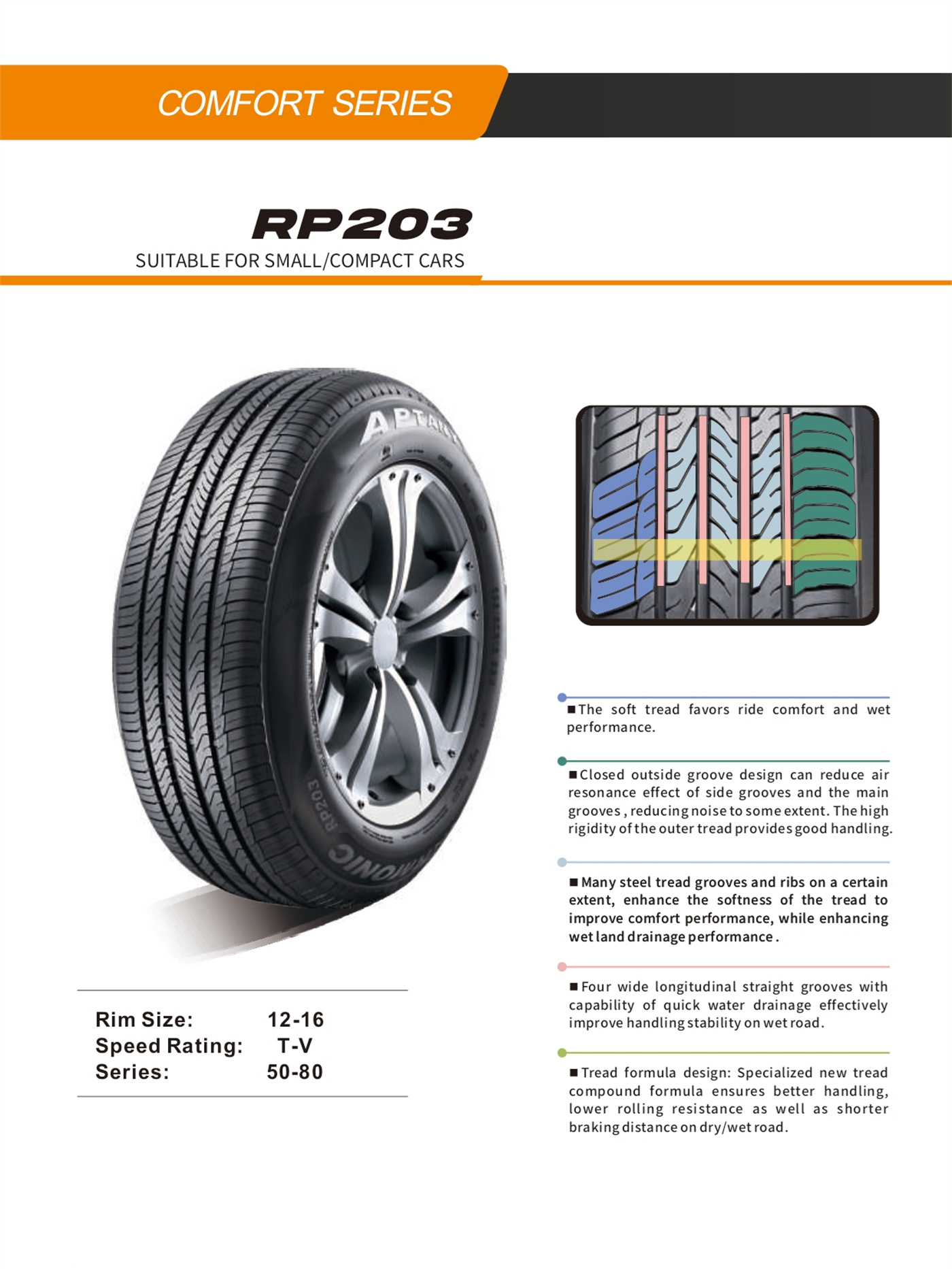 | Aspect Rating | Size | Load Index | Speed Rating | Std.Rim | Section Width (mm) | Overall Diameter (mm) | Max Air Pressure (KPA) | Load Capacity (kg) |