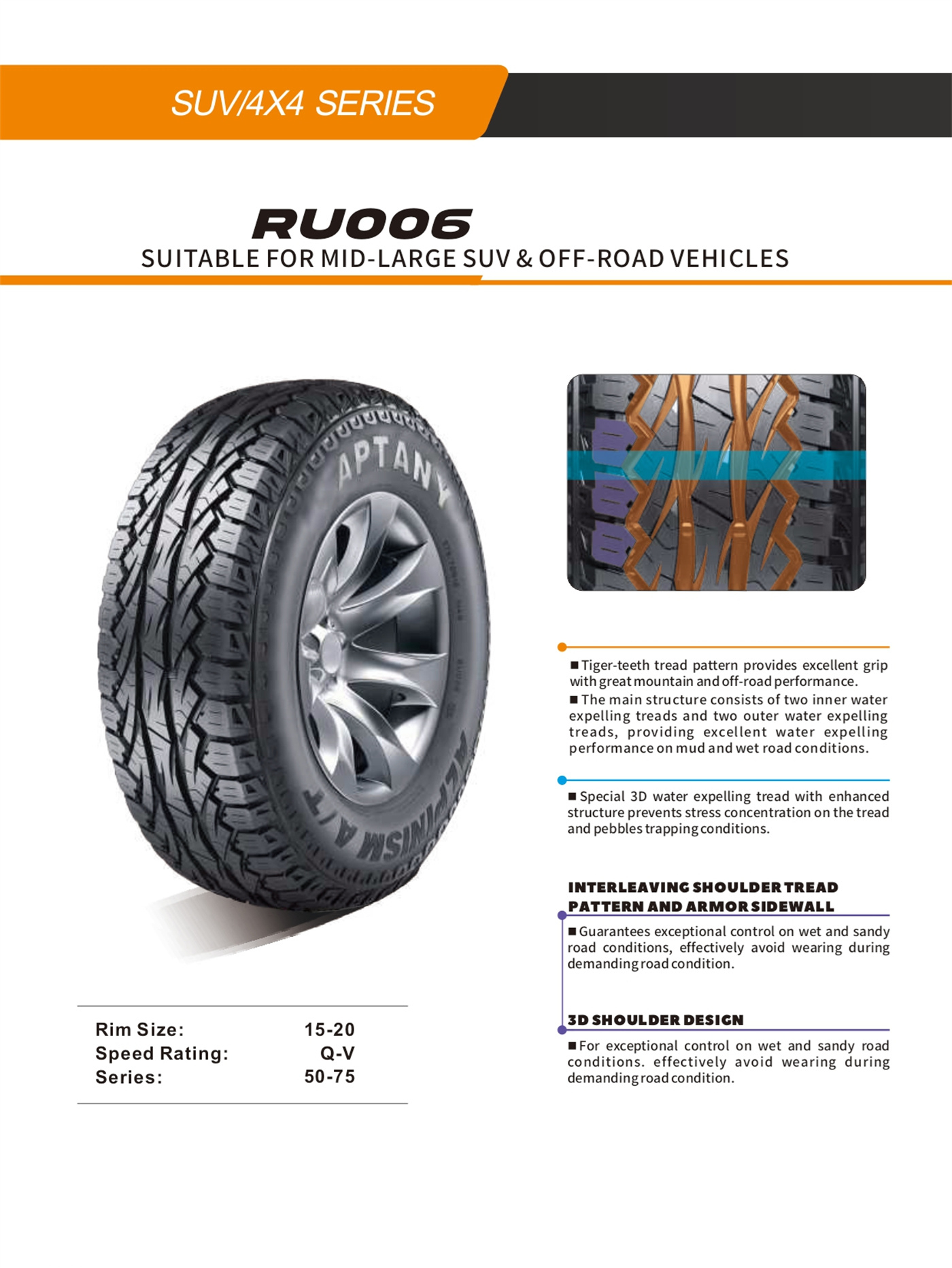 | 31×10.50R15LT | 109 | Q | 81/2J | 268 | 775 | 350 | 1030 |