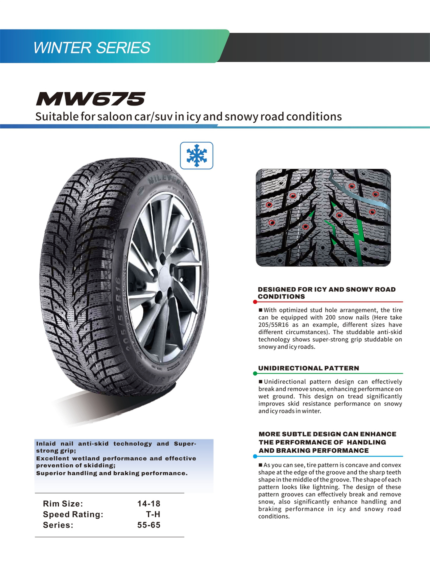 | 55 | 225/55R18 | 102/XL | H | 7J | 233 | 705 | 290 | 850 |