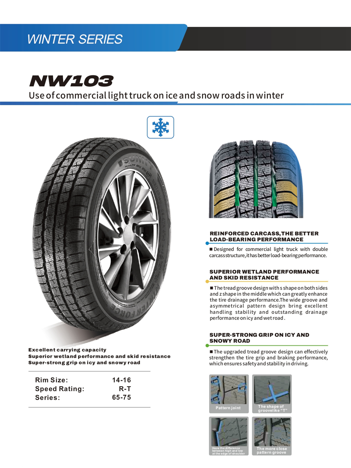 | 65 | 195/65R16C | 104/102 | T | 6J | 201 | 660 | 475 | 900 |