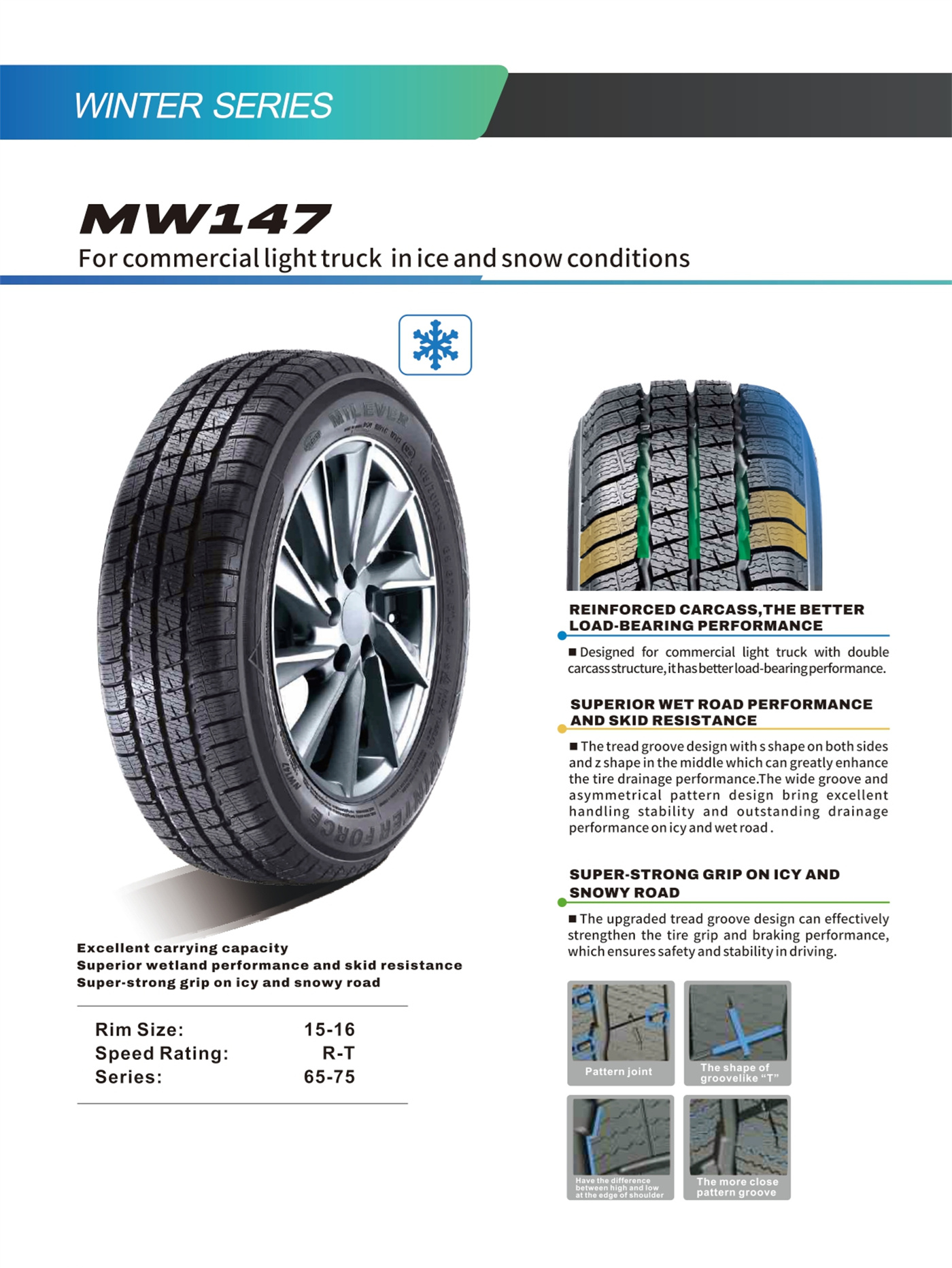 | 65 | 195/65R16C | 104/102 | T | 6J | 201 | 660 | 475 | 900 |