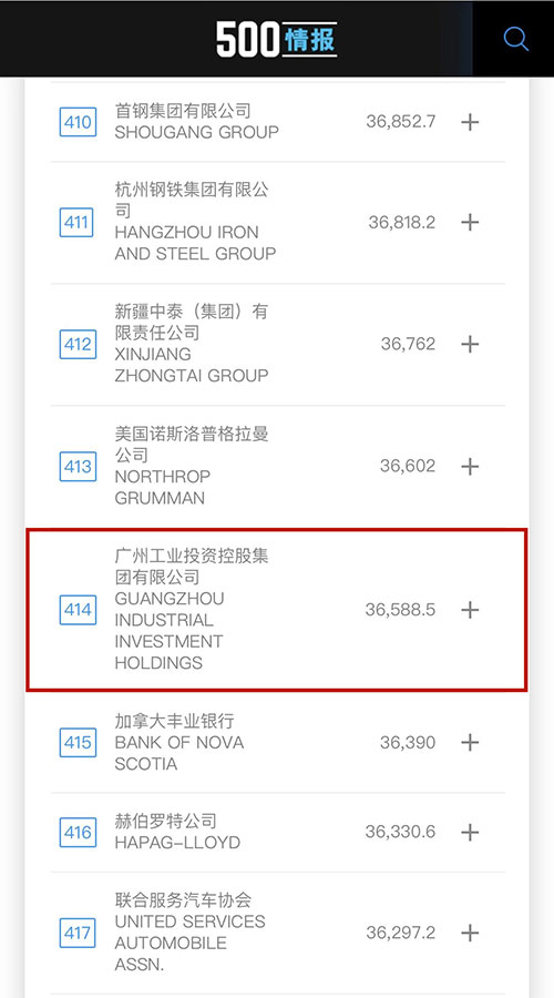 《财富》世界500强榜单被视为衡量全球大型公司最著名、最权威的榜单,以公司年度收入和利润为主要评定依据,是世界知名企业用来判断自身实力、规模和国际竞争力的重要指标。此次入围世界500强,进一步彰显广州工控的综合实力和国际影响力,将极大地提升广州工控的品牌价值,对于提升广州工业知名度和影响力,提升广州国家中心城市、世界大都市影响力,都具有重要意义。