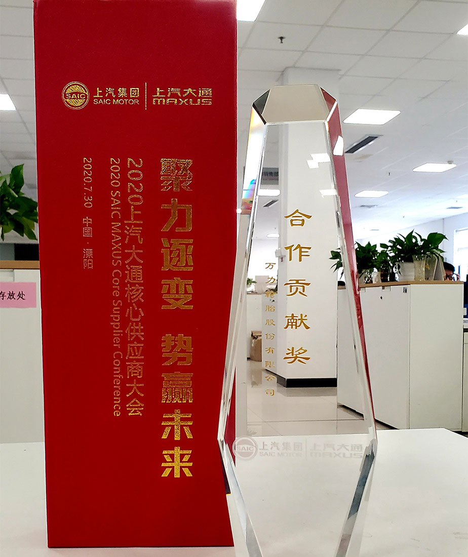 2020年7月30日,上汽大通在溧阳举办了2020年度核心供应商大会,来自全国各地的核心汽车零部件供应商代表参与了此次大会,与上汽大通共同商讨未来的发展大计。万力轮胎应邀出席此次会议,并凭借优秀的产品品质和专业高效的配套服务,荣获上汽大通“合作贡献奖”。